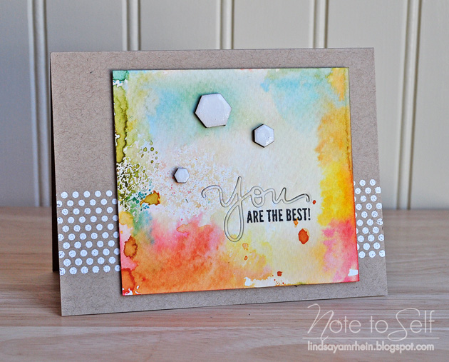 I also created a super simple one layer card, using on of the flower images. I colored it directly with Tombow markers and then gave it a spritz of water. I love the watery look! I then stamped my sentiment.